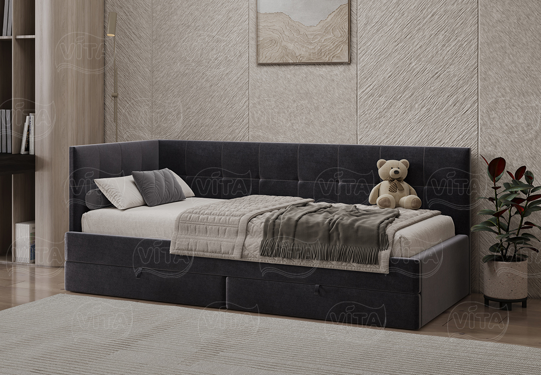 Односпальная кровать «Алиса» – универсальное решение для детей и взрослых. Выдерживает до 120 кг. Прочное основание-щит подходит для матраса любого типа. Оснащена двумя мобильными ящиками на колесах для хранения.