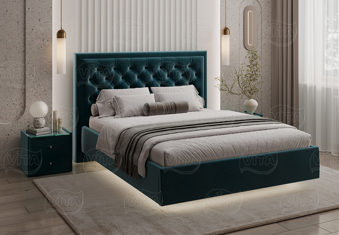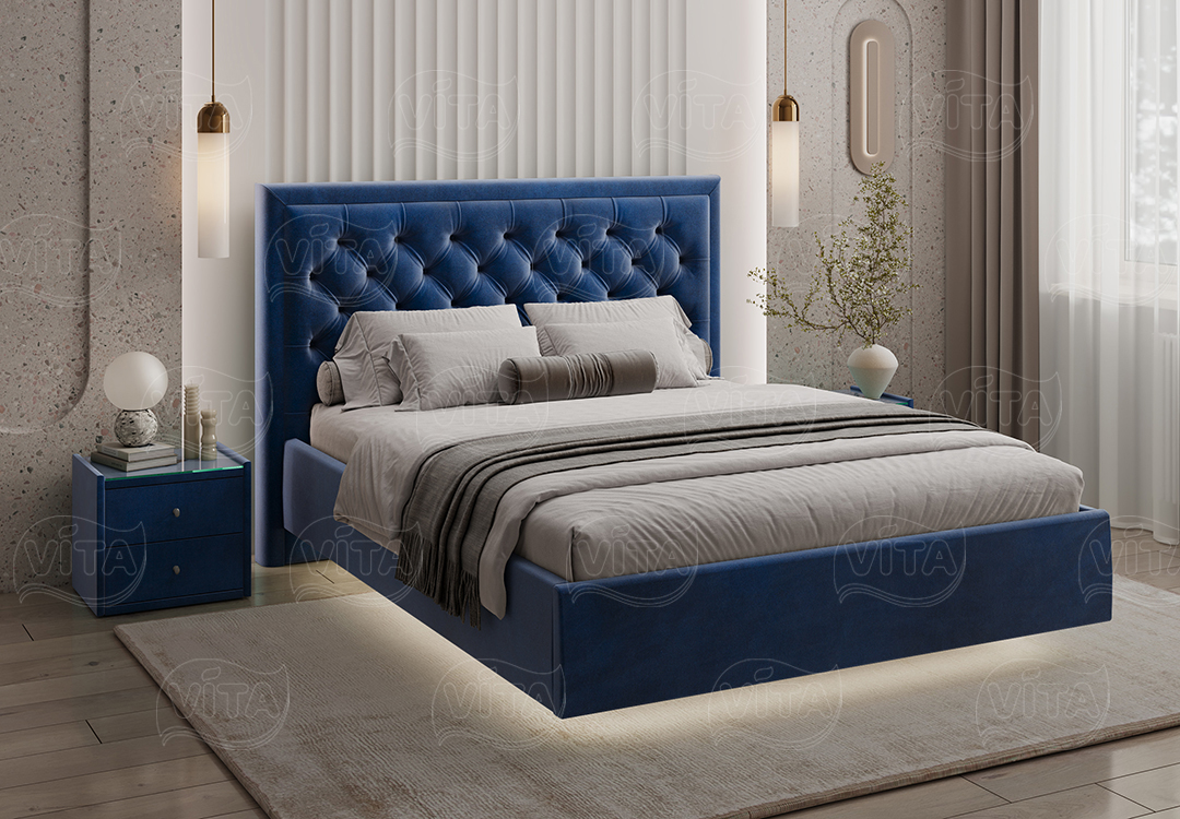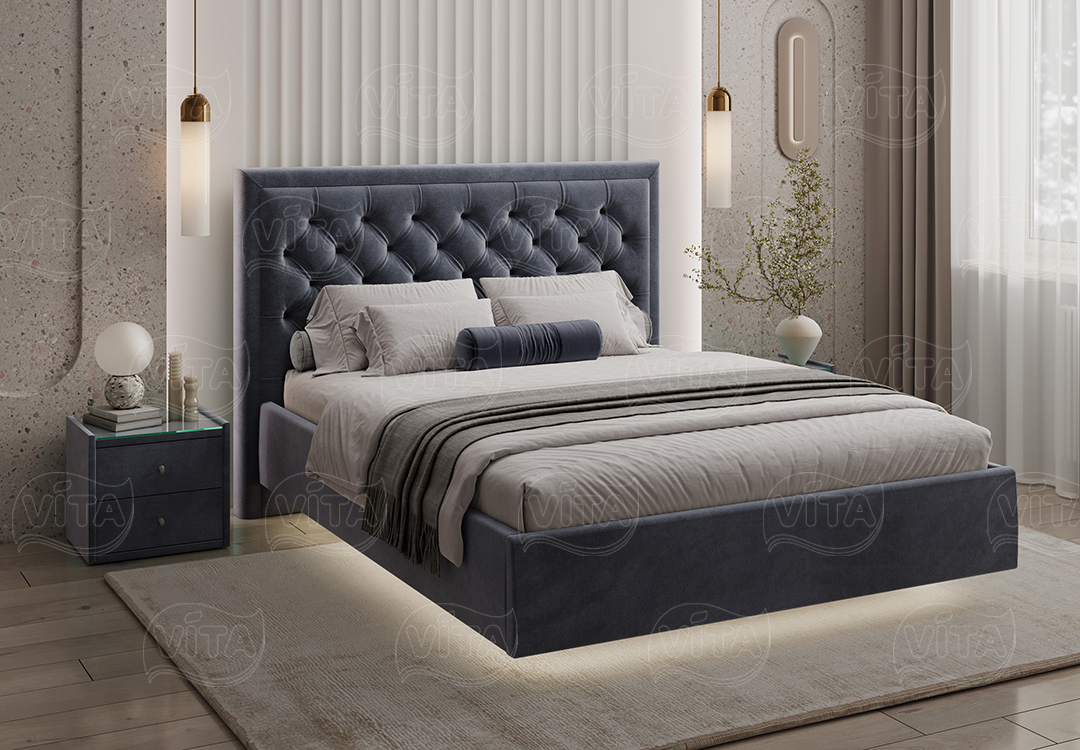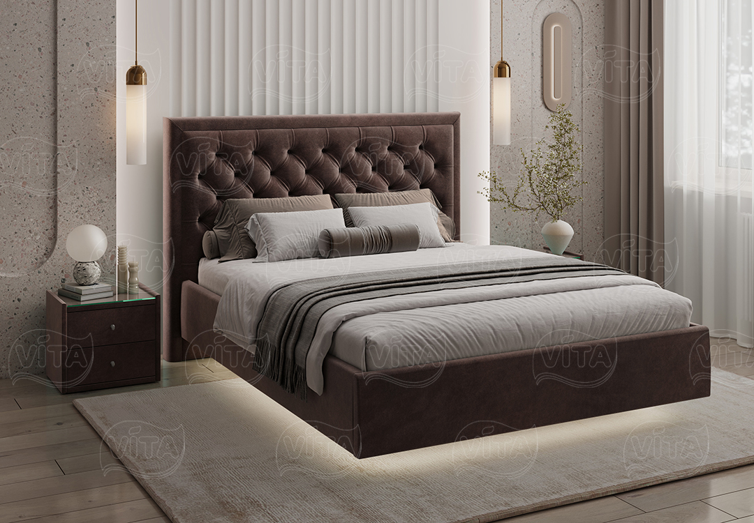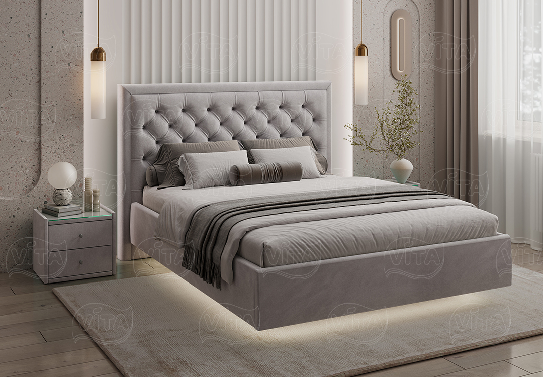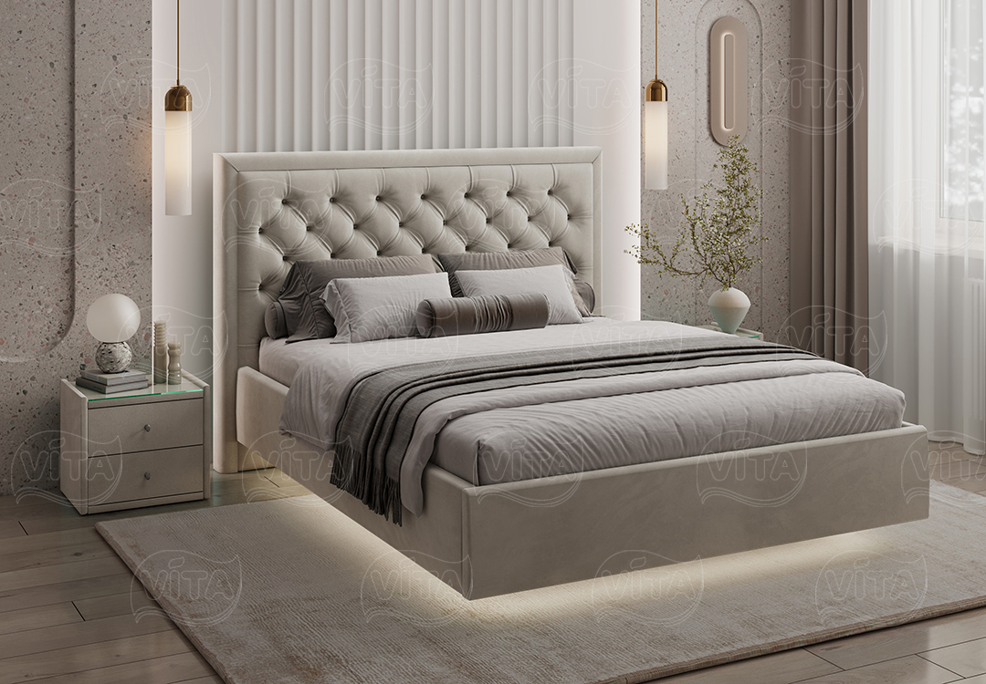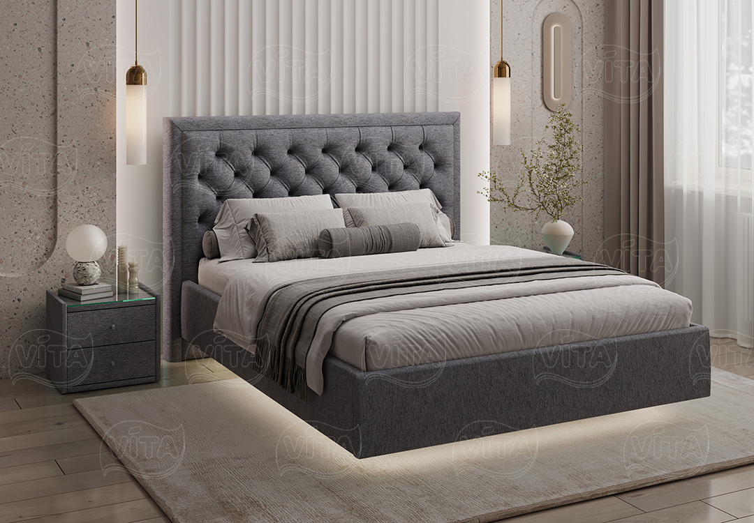 Кровать «Наоми» — идеальный выбор для спальни, объединяющий стиль и комфорт. Оригинальное изголовье с каретной стяжкой придаёт торжественность и долговечность.