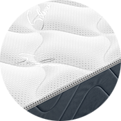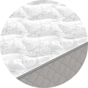 Матрас сшит в чехле из премиального трикотажа с объёмной стёжкой на 300 гр. холкона и бурлетом из мебельного велюра серого цвета, что придаёт ему эстетичный внешний вид и повышает износостойкость.